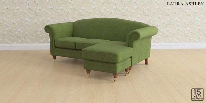 6.12.1 Buy Gloucester by Laura Ashley Medium Sofa Chaise - Universal Tichwell Olive Green Low Brass Castor - Teak from the Laura Ashley online shop Click here to use our website with more accessibility support, for example screen readers