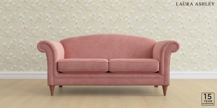 6.12.1 Buy Gloucester by Laura Ashley 3 Seater Small Sofa Bainton Old Rose Pink Low Turned - Teak from the Laura Ashley online shop Click here to use our website with more accessibility support, for example screen readers
