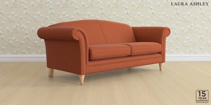 6.12.13 Buy Gloucester by Laura Ashley 3 Seater Sofa Harley Terracotta Orange Low Turned - Light Oak from the Laura Ashley online shop Click here to use our website with more accessibility support, for example screen readers