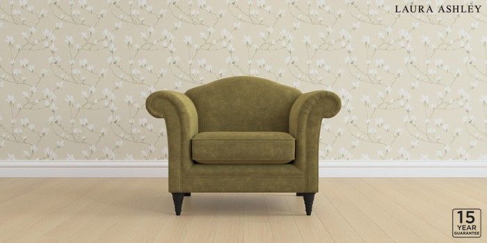6.12.1 Buy Gloucester by Laura Ashley Armchair Alwyn Velvet Olive Green Low Turned - Black from the Laura Ashley online shop Click here to use our website with more accessibility support, for example screen readers