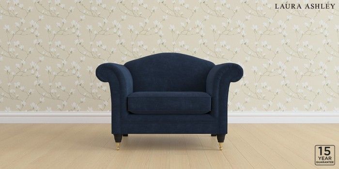 6.12.1 Buy Gloucester by Laura Ashley Snuggle Alwyn Velvet Midnight Navy Low Brass Castor - Black from the Laura Ashley online shop Click here to use our website with more accessibility support, for example screen readers