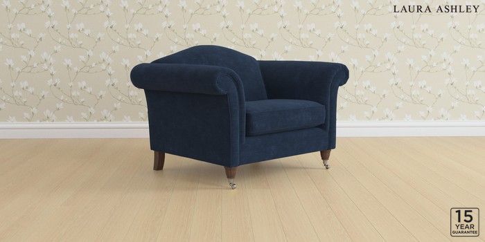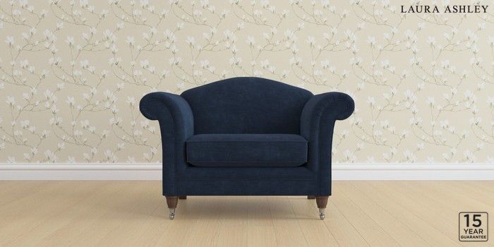 6.12.1 Buy Gloucester by Laura Ashley Snuggle Alwyn Velvet Midnight Navy Low Chrome Castor - Chestnut from the Laura Ashley online shop Click here to use our website with more accessibility support, for example screen readers