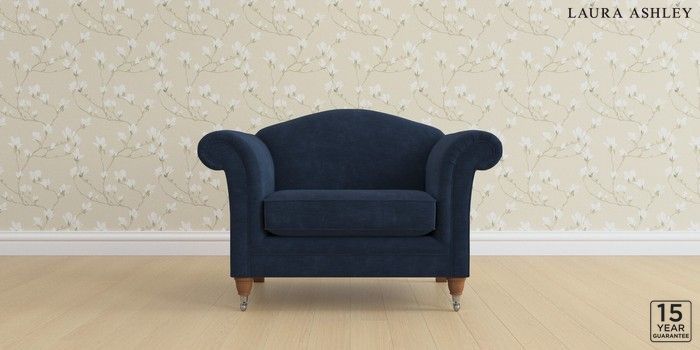6.12.1 Buy Gloucester by Laura Ashley Snuggle Alwyn Velvet Midnight Navy Low Chrome Castor - Teak from the Laura Ashley online shop Click here to use our website with more accessibility support, for example screen readers