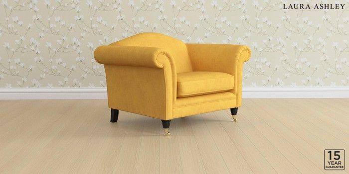 6.12.1 Buy Gloucester by Laura Ashley Snuggle Bainton Ochre Yellow Low Brass Castor - Black from the Laura Ashley online shop Click here to use our website with more accessibility support, for example screen readers