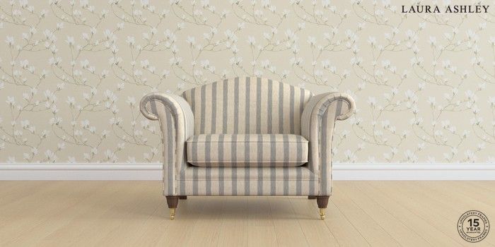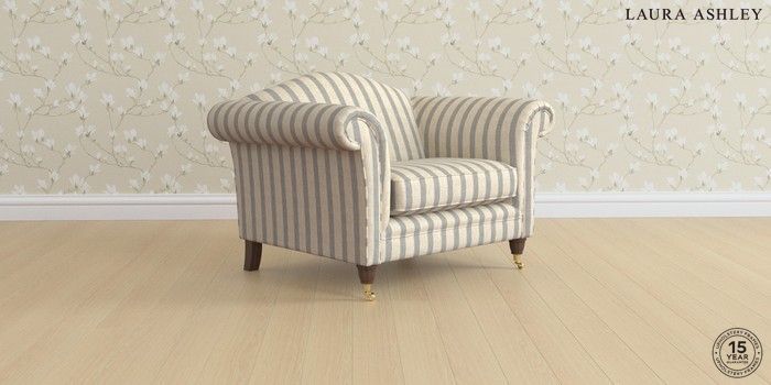 6.12.1 Buy Gloucester by Laura Ashley Snuggle Kinsham Stripe Seaspray Blue Low Brass Castor - Chestnut from the Laura Ashley online shop Click here to use our website with more accessibility support, for example screen readers