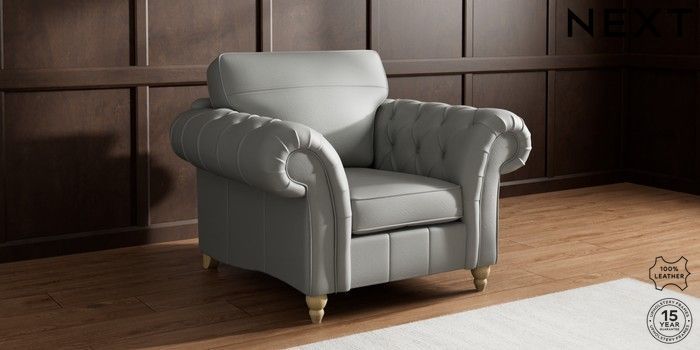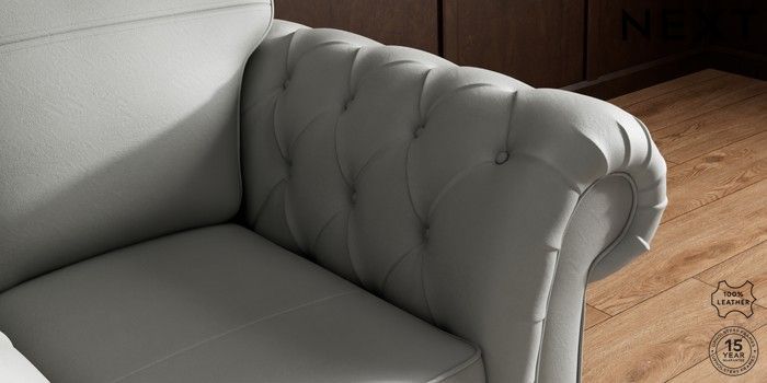 7.0.3 Buy Gosford Button Arm Leather Armchair Columbia French Grey Low Turned - Light from the Laura Ashley online shop Click here to use our website with more accessibility support, for example screen readers