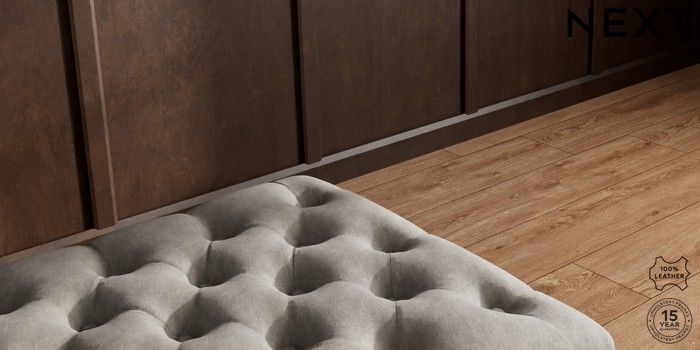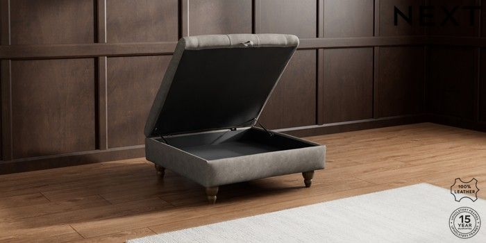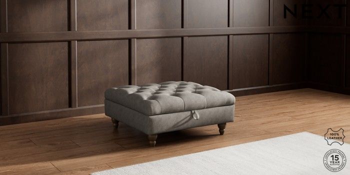 7.0.3 Buy Gosford Button Arm Leather Extra Large Storage Footstool Antiqued Leather Grey Low Turned - Mid from the Laura Ashley online shop Click here to use our website with more accessibility support, for example screen readers