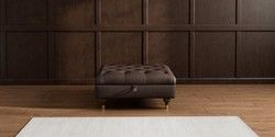 6.12.1 Buy Gosford Button Arm Leather Extra Large Storage Footstool Turin Leather Dark Brown Modern Turned Metal Cap - Mid from the Laura Ashley online shop Click here to use our website with more accessibility support, for example screen readers