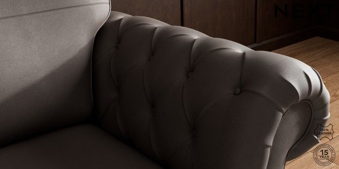 A twist on the classic chesterfield with supportive back cushions and gorgeous deep button arms crafted by hand . This range combines elegant style and superior comfort and the firmer sit seat cushions are made with a comfortable and durable foam core, wrapped in fibre.