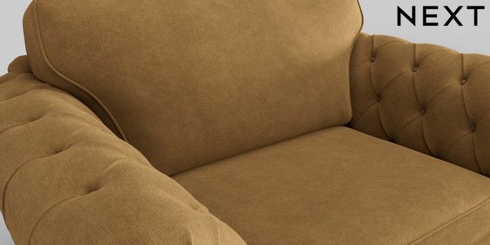 • . Over scaled arms with luxurious deep buttoning