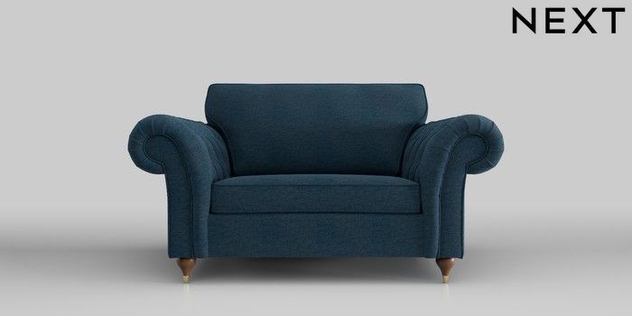 6.12.1 Buy Gosford Highback II Deep Sit 2 Seater Small Sofa Ripple Chenille Dark Blue Modern Turned Metal Cap - Mid from the Laura Ashley online shop Click here to use our website with more accessibility support, for example screen readers