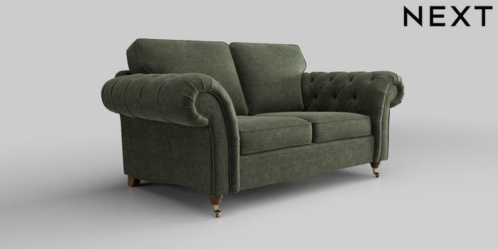 6.12.1 Buy Gosford Highback II Deep Sit 2 Seater Sofa Luxe Chenille Mid Green Castor - Mid from the Laura Ashley online shop Click here to use our website with more accessibility support, for example screen readers