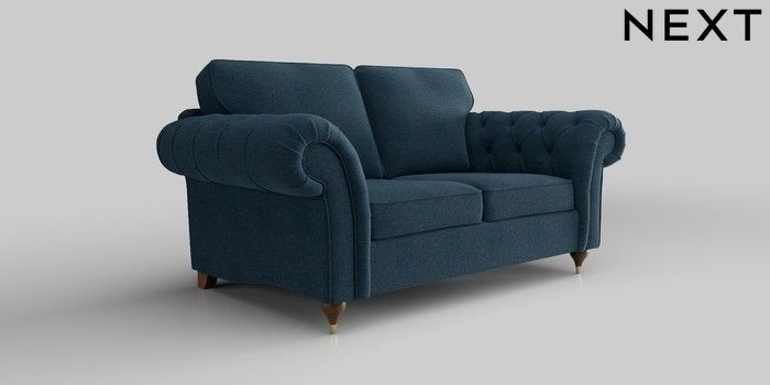 6.12.1 Buy Gosford Highback II Deep Sit 2 Seater Sofa Ripple Chenille Dark Blue Modern Turned Metal Cap - Mid from the Laura Ashley online shop Click here to use our website with more accessibility support, for example screen readers