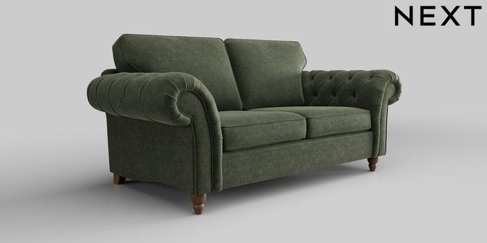 6.12.1 Buy Gosford Highback II Deep Sit 3 Seater Small Sofa Luxe Chenille Mid Green Low Turned - Mid from the Laura Ashley online shop Click here to use our website with more accessibility support, for example screen readers