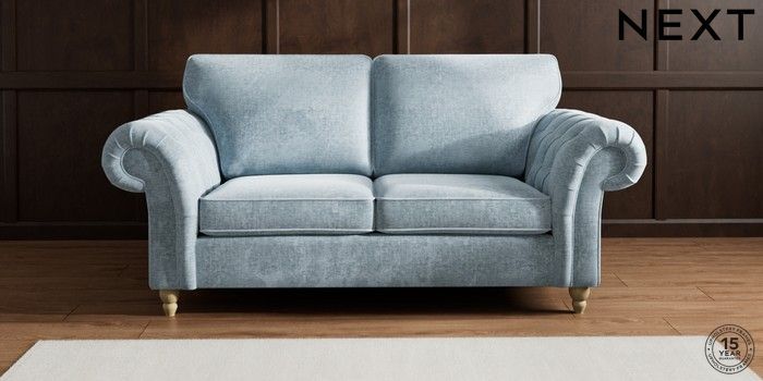 7.2.6 Buy Gosford Highback II Deep Sit 3 Seater Small Sofa Plush Chenille Light Blue Low Turned - Light from the Laura Ashley online shop Click here to use our website with more accessibility support, for example screen readers