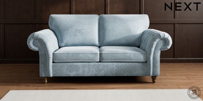 7.2.6 Buy Gosford Highback II Deep Sit 3 Seater Small Sofa Plush Chenille Light Blue Low Turned - Mid from the Laura Ashley online shop Click here to use our website with more accessibility support, for example screen readers