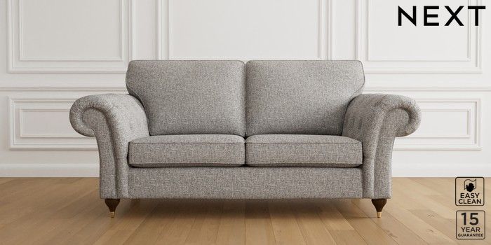6.11.8 Buy Gosford Highback II Deep Sit 3 Seater Small Sofa Tweedy Blend Easy Clean Light Silver Grey Modern Turned Metal Cap - Mid from the Laura Ashley online shop Click here to use our website with more accessibility support, for example screen readers