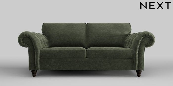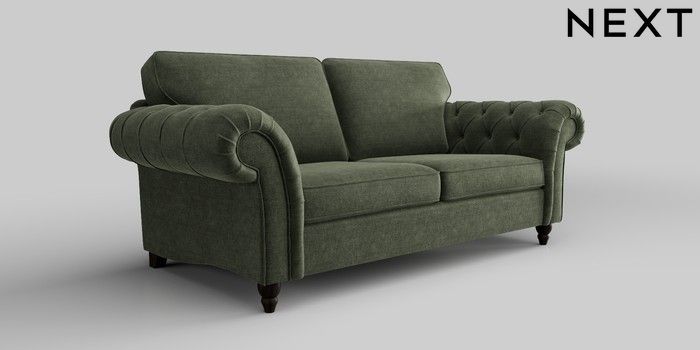 6.12.1 Buy Gosford Highback II Deep Sit 3 Seater Sofa Luxe Chenille Mid Green Low Turned - Dark from the Laura Ashley online shop Click here to use our website with more accessibility support, for example screen readers