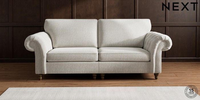 The Gosford High Back sofa brings all the charm and elegance of the classic Gosford, with added comfort thanks to its higher back cushions. The gorgeous deep buttoning on the arms really makes a style statement. This sofa features our special "Firmer Sit" seat cushions, which use a high-density foam core surrounded by soft toppers. This smart design provides ultimate support, lasting durability, and ensures the cushions always spring back to their tailored look. They're also wonderfully low-maintenance. For an extra touch of luxury, we've included plush scatter cushions filled with a rich fibre mix. The seat cushions are reversible too, so a quick flip and plump will keep them looking their best. Make the Gosford High Back uniquely yours by choosing from a huge range of fabrics and a choice of feet.
