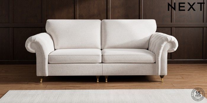 The Gosford High Back sofa brings all the charm and elegance of the classic Gosford, with added comfort thanks to its higher back cushions. The gorgeous deep buttoning on the arms really makes a style statement. This sofa features our special "Firmer Sit" seat cushions, which use a high-density foam core surrounded by soft toppers. This smart design provides ultimate support, lasting durability, and ensures the cushions always spring back to their tailored look. They're also wonderfully low-maintenance. For an extra touch of luxury, we've included plush scatter cushions filled with a rich fibre mix. The seat cushions are reversible too, so a quick flip and plump will keep them looking their best. Make the Gosford High Back uniquely yours by choosing from a huge range of fabrics and a choice of feet.