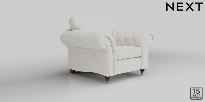 6.12.1 Buy Gosford Highback II Deep Sit Armchair Chunky Texture Oyster Modern Turned Metal Cap - Mid from the Laura Ashley online shop Click here to use our website with more accessibility support, for example screen readers