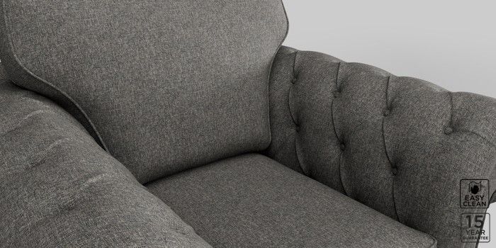 • . Over scaled arms with luxurious deep buttoning