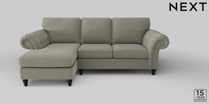 6.12.1 Buy Gosford Highback II Deep Sit Medium Sofa Chaise - Left Hand Chunky Marl Light Olive Green Low Turned - Dark from the Laura Ashley online shop Click here to use our website with more accessibility support, for example screen readers