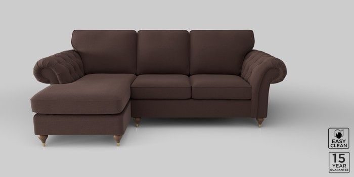 6.12.1 Buy Gosford Highback II Deep Sit Medium Sofa Chaise - Left Hand Fine Chenille Easy Clean Chocolate Brown Modern Turned Metal Cap - Mid from the Laura Ashley online shop Click here to use our website with more accessibility support, for example screen readers