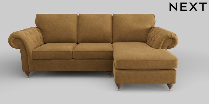 6.12.1 Buy Gosford Highback II Deep Sit Medium Sofa Chaise - Right Hand Luxe Chenille Honey Yellow Modern Turned Metal Cap - Mid from the Laura Ashley online shop Click here to use our website with more accessibility support, for example screen readers