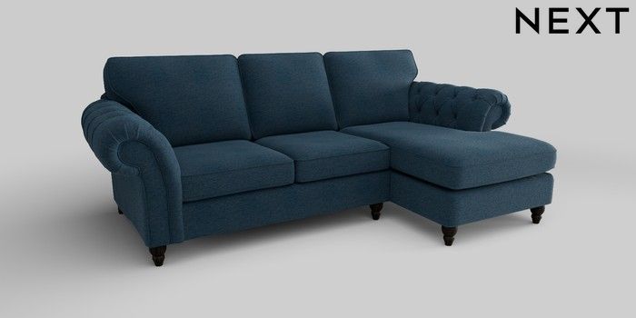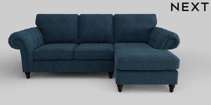 6.12.1 Buy Gosford Highback II Deep Sit Medium Sofa Chaise - Right Hand Ripple Chenille Dark Blue Low Turned - Dark from the Laura Ashley online shop Click here to use our website with more accessibility support, for example screen readers