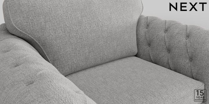 • . Over scaled arms with luxurious deep buttoning