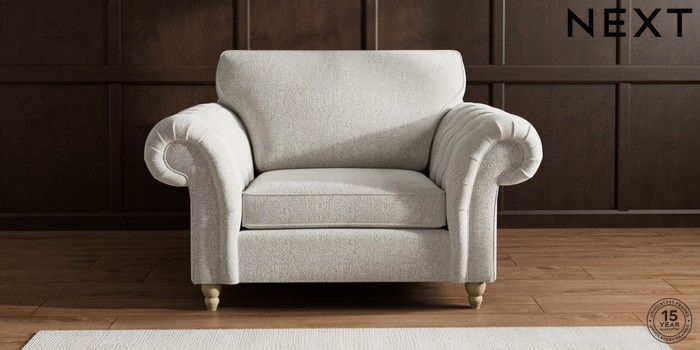 • . Over scaled arms with luxurious deep buttoning