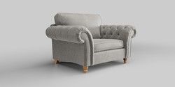 • . Over scaled arms with luxurious deep buttoning