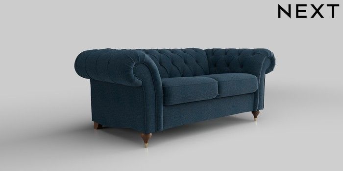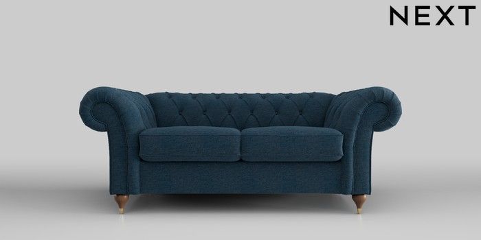 6.12.1 Buy Gosford II Deep Sit 2 Seater Sofa Ripple Chenille Dark Blue Modern Turned Metal Cap - Mid from the Laura Ashley online shop Click here to use our website with more accessibility support, for example screen readers