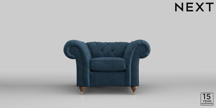 6.12.1 Buy Gosford II Deep Sit Armchair Cotswold Chenille Dark Blue Modern Turned Metal Cap - Mid from the Laura Ashley online shop Click here to use our website with more accessibility support, for example screen readers