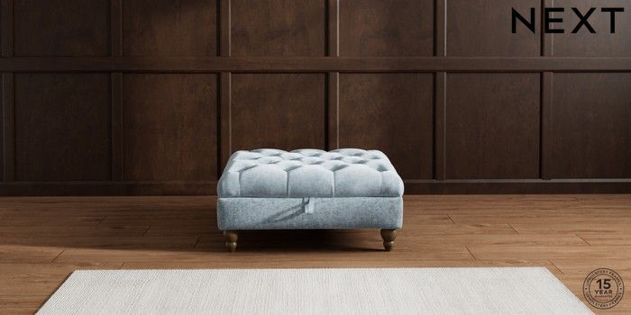 7.2.6 Buy Gosford II Deep Sit Extra Large Storage Footstool Plush Chenille Light Blue Low Turned - Mid from the Laura Ashley online shop Click here to use our website with more accessibility support, for example screen readers