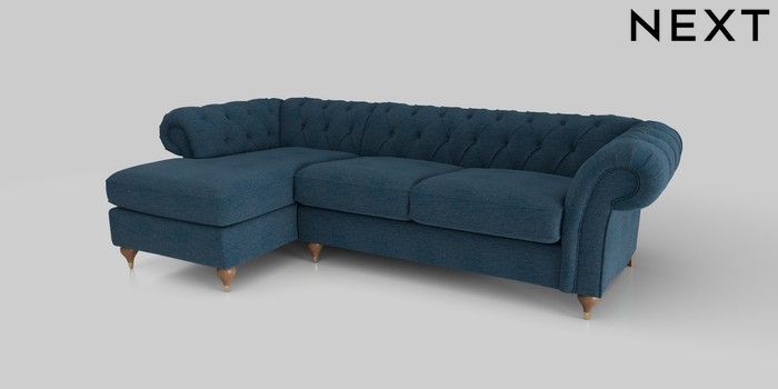 6.12.1 Buy Gosford II Deep Sit Medium Sofa Chaise - Left Hand Ripple Chenille Dark Blue Modern Turned Metal Cap - Mid from the Laura Ashley online shop Click here to use our website with more accessibility support, for example screen readers