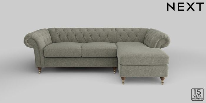 6.12.1 Buy Gosford II Deep Sit Medium Sofa Chaise - Right Hand Chunky Marl Light Olive Green Castor - Mid from the Laura Ashley online shop Click here to use our website with more accessibility support, for example screen readers