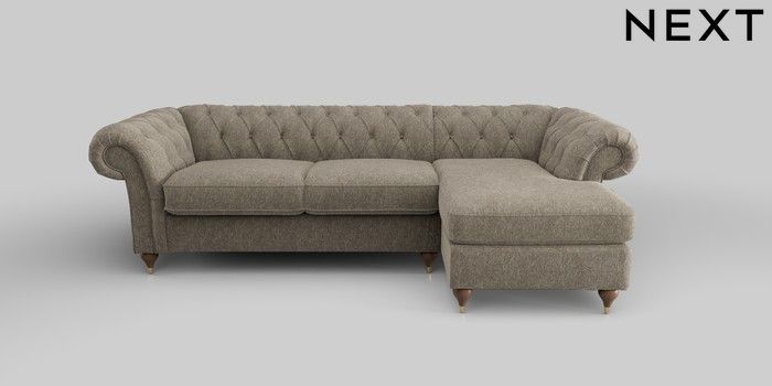 6.12.1 Buy Gosford II Deep Sit Medium Sofa Chaise - Right Hand Cotswold Chenille Mid Mink Brown Modern Turned Metal Cap - Mid from the Laura Ashley online shop Click here to use our website with more accessibility support, for example screen readers