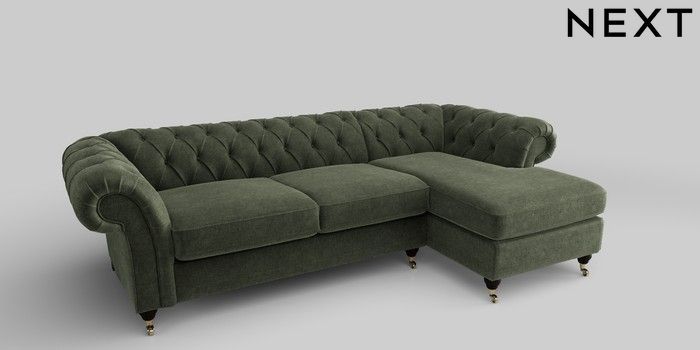 6.12.1 Buy Gosford II Deep Sit Medium Sofa Chaise - Right Hand Luxe Chenille Mid Green Castor - Dark from the Laura Ashley online shop Click here to use our website with more accessibility support, for example screen readers