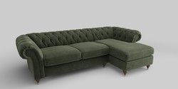 6.12.1 Buy Gosford II Deep Sit Medium Sofa Chaise - Right Hand Luxe Chenille Mid Green Modern Turned Metal Cap - Mid from the Laura Ashley online shop Click here to use our website with more accessibility support, for example screen readers
