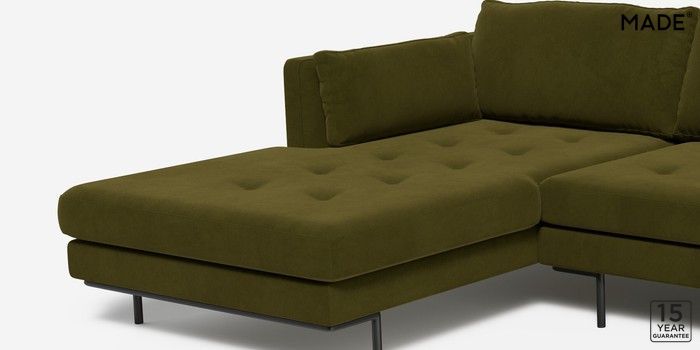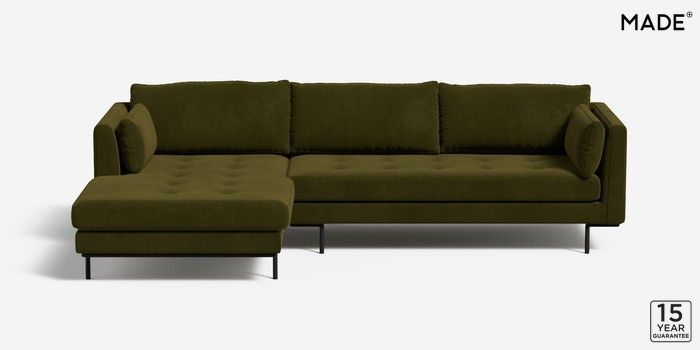 6.12.1 Buy Harlow by Made Medium Sofa Chaise - Left Hand Matt Velvet Easy Clean Deep Olive Green Skinny - Black from the Laura Ashley online shop Click here to use our website with more accessibility support, for example screen readers