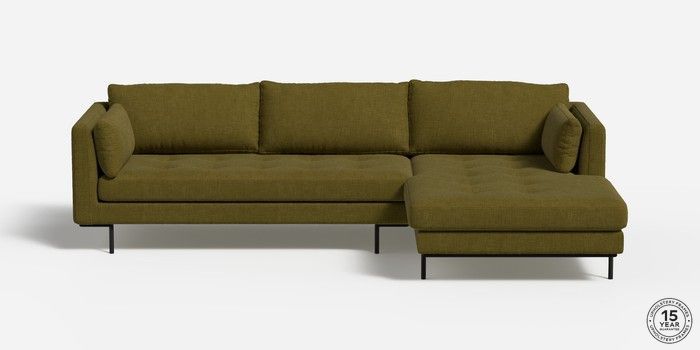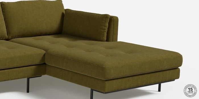 6.12.1 Buy Harlow by Made Medium Sofa Chaise - Right Hand Etched Chenille Moss Green Skinny - Black from the Laura Ashley online shop Click here to use our website with more accessibility support, for example screen readers