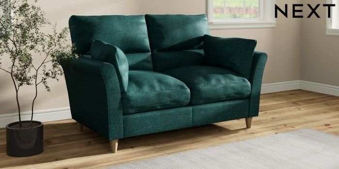 7.3.1 Buy Hartley Highback Relaxed Sit 2 Seater Sofa Plush Chenille Dark Teal Green Low Conical - Light from the Laura Ashley online shop