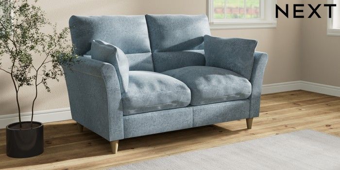 7.3.1 Buy Hartley Highback Relaxed Sit 2 Seater Sofa Plush Chenille Light Blue Low Conical - Light from the Laura Ashley online shop