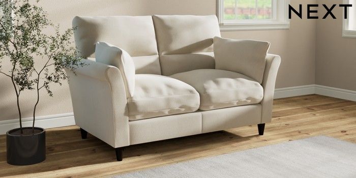 7.3.1 Buy Hartley Highback Relaxed Sit 2 Seater Sofa Relaxed Linen Look Oyster Low Conical - Dark from the Laura Ashley online shop