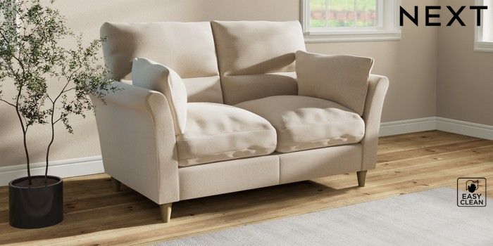 7.3.1 Buy Hartley Highback Relaxed Sit 2 Seater Sofa Tweedy Blend Easy Clean Oyster Low Conical - Light from the Laura Ashley online shop