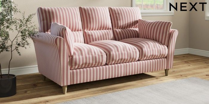7.3.1 Buy Hartley Highback Relaxed Sit 3 Cushion 3 Seater Sofa Bold Chenille Stripe Dark Pink Low Conical - Light from the Laura Ashley online shop