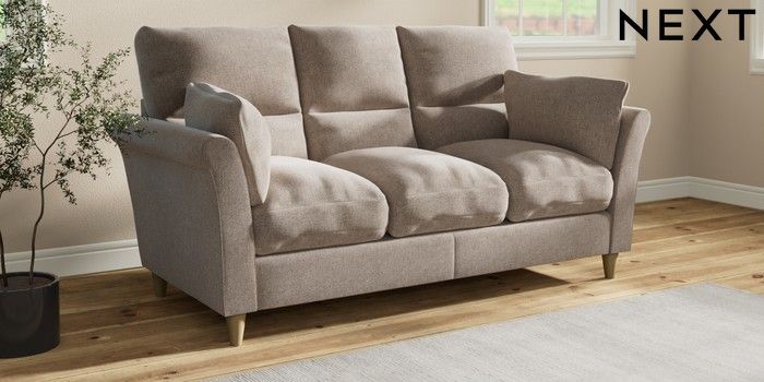 7.3.1 Buy Hartley Highback Relaxed Sit 3 Cushion 3 Seater Sofa Chunky Chenille Light Dove Low Conical - Light from the Laura Ashley online shop