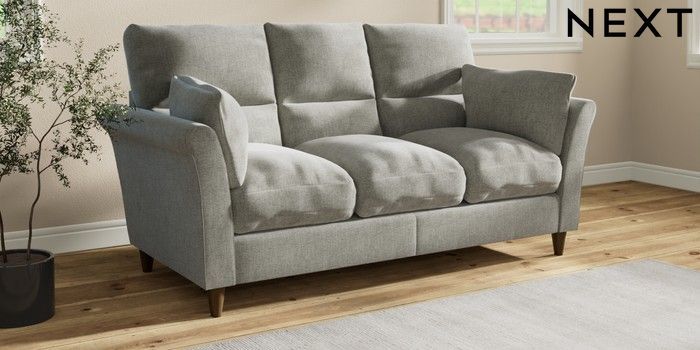 7.3.1 Buy Hartley Highback Relaxed Sit 3 Cushion 3 Seater Sofa Chunky Chenille Light Grey Low Conical - Mid from the Laura Ashley online shop
